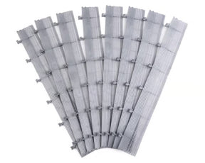 AFX Flexible Slot Car Catch Fence. This Catch Fence is built to endure high-impact collisions while remaining flexible to prevent damage to your car. Its intricate yet robust design allows for easy shaping to fit any curve on your track, ensuring secure connections. Small notches seamlessly link fence sections and detach effortlessly.
