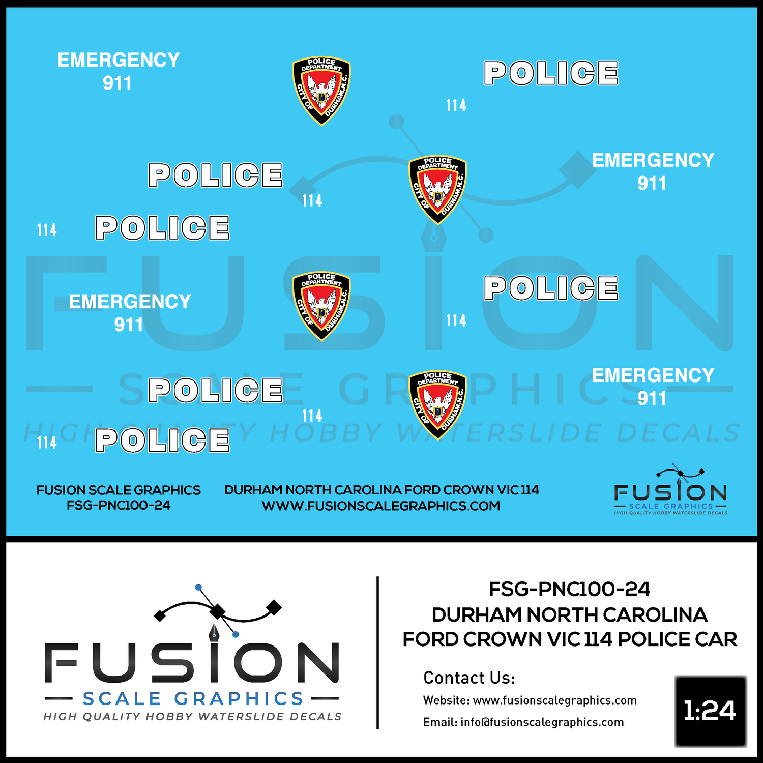 1/24th Scale Durham North Carolina Crown Vic 114 Police Car Decal Set