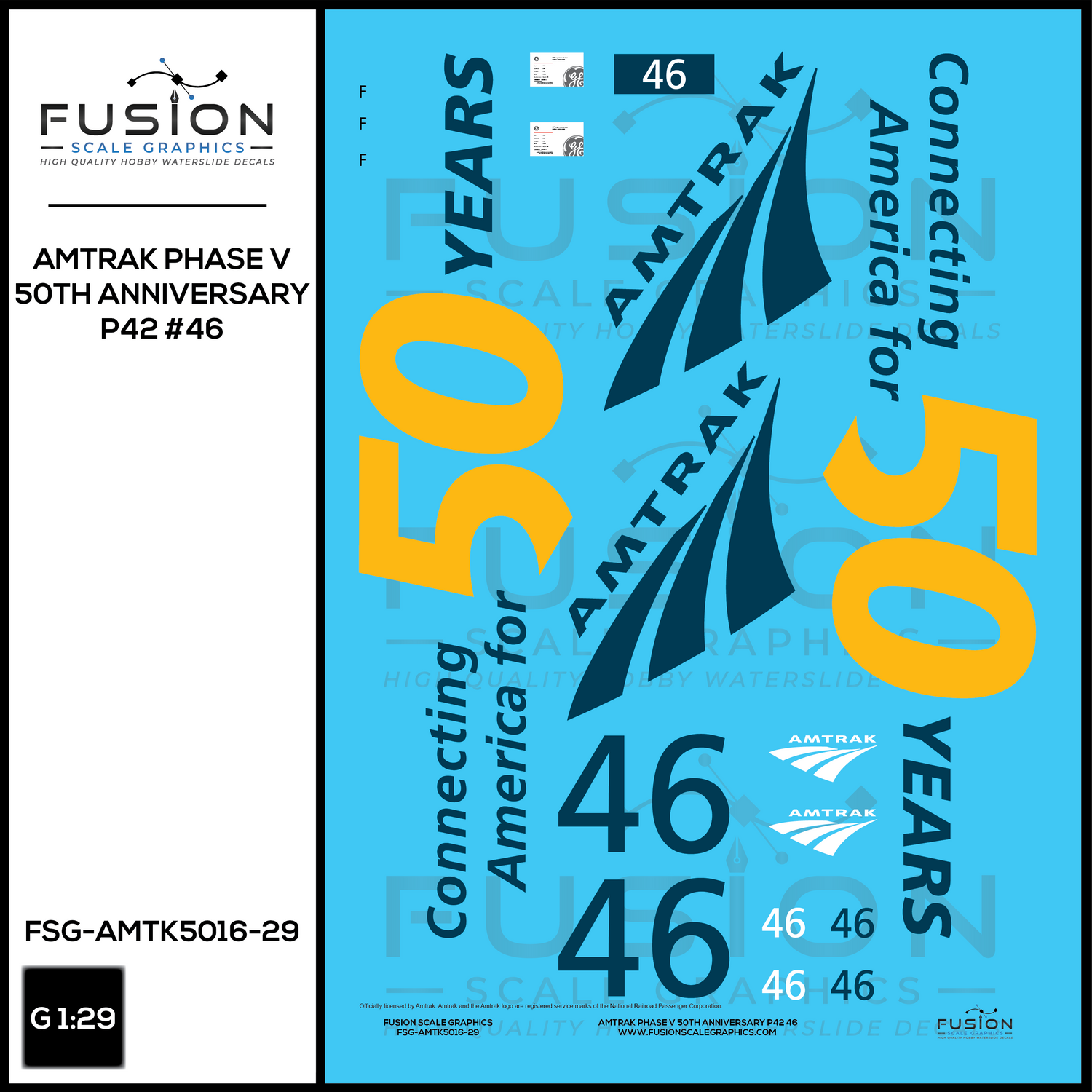 G Scale 1:29 Amtrak Phase V 50th Anniversary P42 46 Locomotive Decal Set