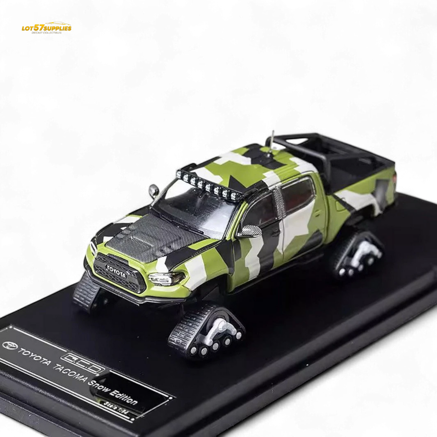 GCD Toyota TACOMA SNOW VERSION in Green Camo & 3PMSF Tires 1:64