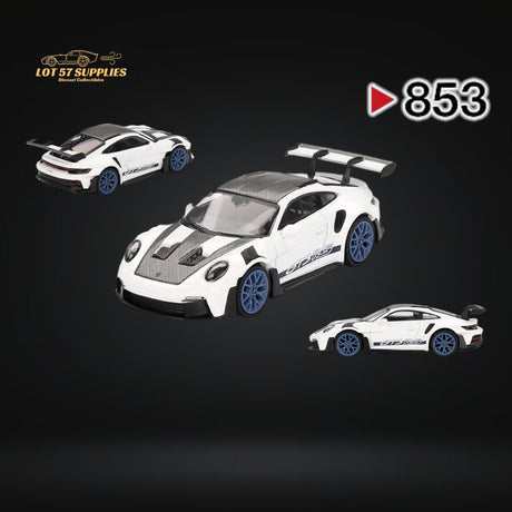 (Pre-Order) Mini-GT Porsche 911 992 GT3 RS Weissach Package White w/ Indigo Blue #853 1:64 MGT00853