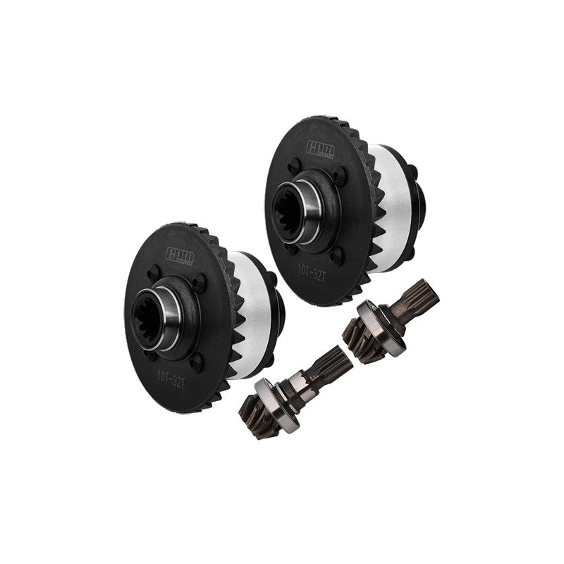 The front and rear differential comes completely assembled and ready to install in your 8s X-Maxx or XRT. Includes: 4140 medium carbon steel differential Bevel Gear 32T/M1.6 , Front and Rear Pinion Gear 10T and bearings 15x24x5 , differential Gear set , 4140 medium carbon steel+7075 alloy diff case , 7075 alloy Differential gear spacers , spider gear shafts , Diff Case Gasket