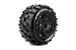 LOUISE T-3351BM MFT X-Rowdy Sport Monster Truck Tires, 24mm Hex, Mounted on Black Rim (2)