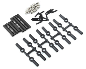 The MST Aluminum 242mm Link Set is a must have upgrade for the CMX and CFX trucks. This kit is specifically for the 242mm wheelbase Unimog and Bronco models. Not only does this kit upgrade the stock plastic links to aluminum, it also includes steel pivot balls that help to reduce slop in the link assemblies. Package includes the links, rod ends, set screws and pivot balls needed to upgrade the upper and lower links on one truck.