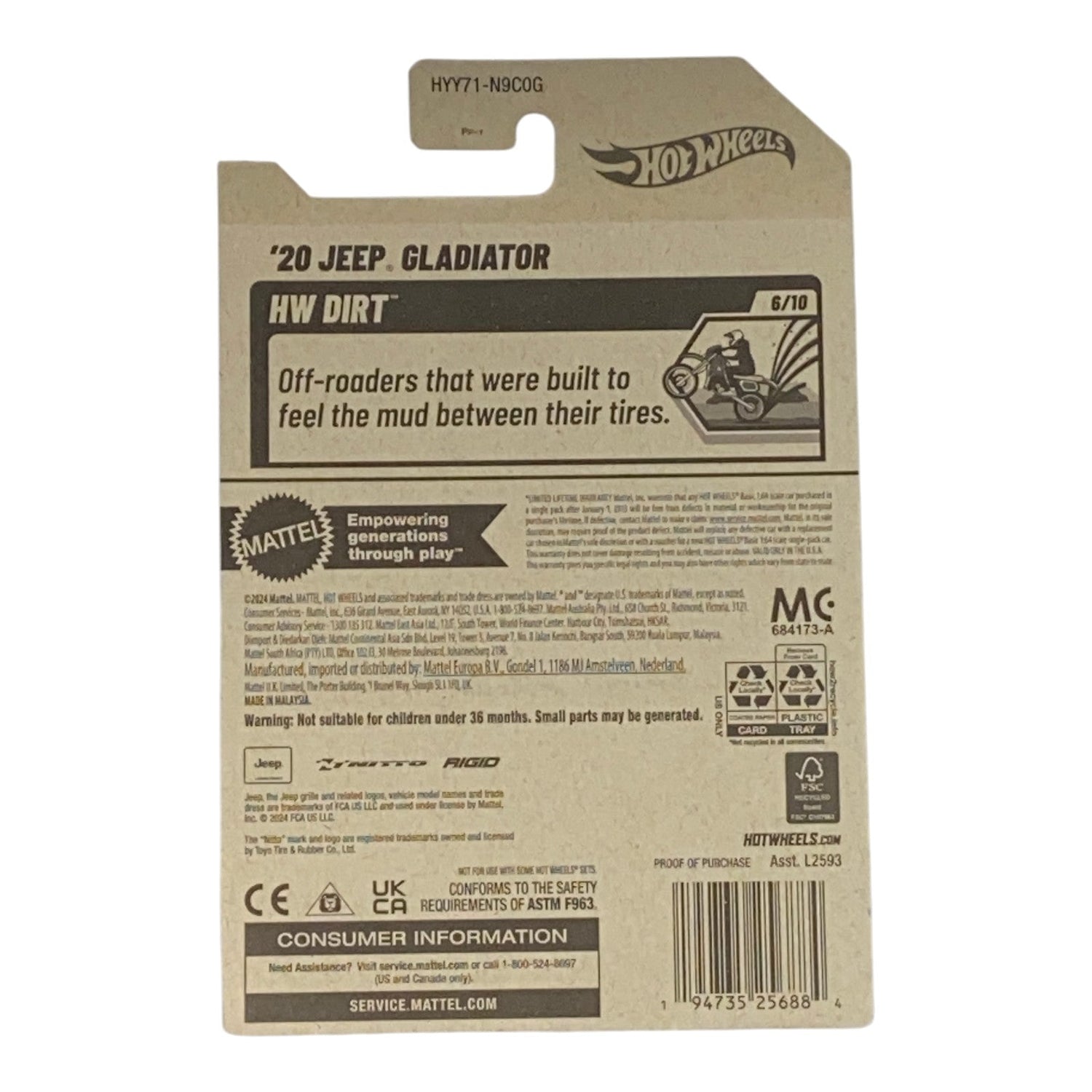 Hot Wheels '20 Jeep Gladiator - HW Dirt Series 6/10 is backordered and will ship as soon as it is back in stock.