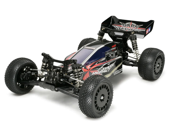 Built for speed, balance, and serious off-road action, the Tamiya DF03 Dark Impact 1/10 Electric 4WD Buggy Kit delivers impressive performance straight out of the box. Its shaft-driven 4WD system, mid-rear motor layout, and long-arm suspension design work together to provide excellent stability, smooth power delivery, and confident handling on dirt tracks and rough terrain, making it an exciting choice for both racers and off-road enthusiasts.