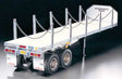 This highly realistic 1/14 scale flatbead semi-trailer model is for use in combination with Tamiya's 1/14 scale R/C tractor trucks. A scale appearance is achieved by using authentic components such as aluminum chassis/frame, wood-floored platform and actual chains.