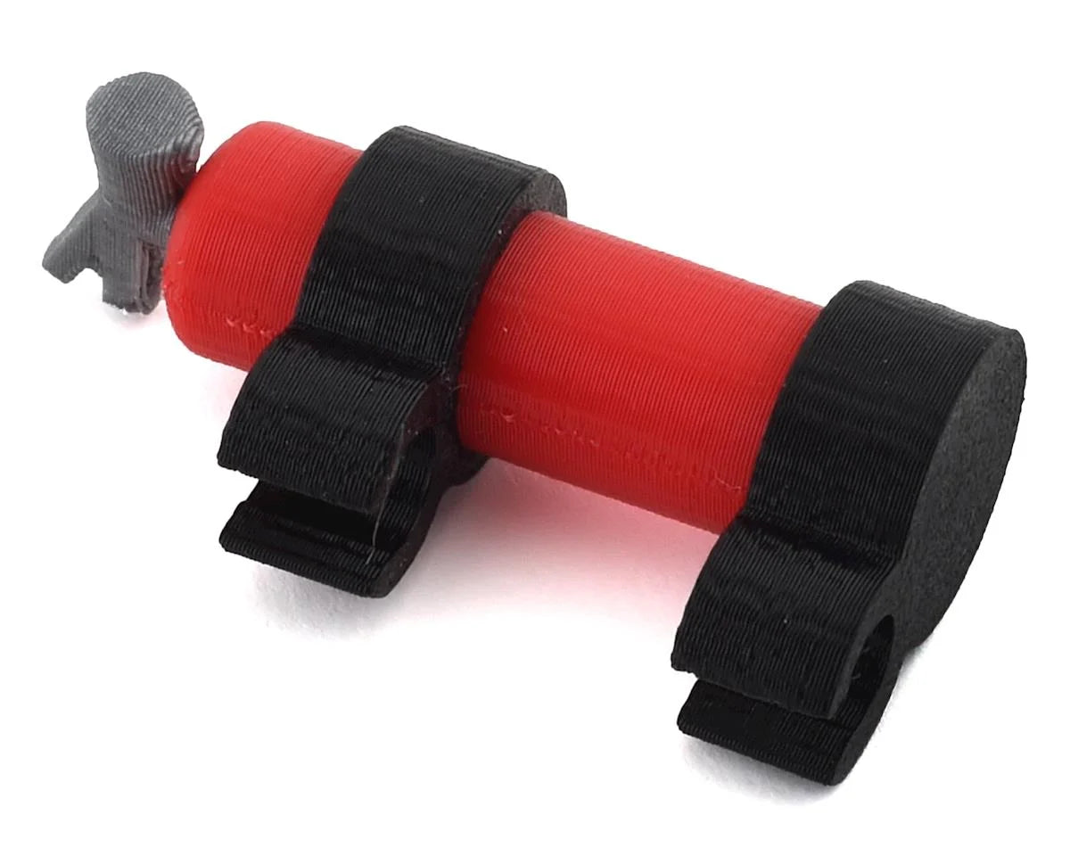 The Scale By Chris Fire Extinguisher with Gatekeeper Cage Clamp combines the standard SBC fire extinguisher with a clamping mount that will clip on to the Gatekeeper cage bar, making it easy to add detail to your custom build. The extinguisher is a 3D printed miniaturized replica that adds that perfect finishing touch to your scale build. This fire extinguisher measures approximately 10x39mm and is a great way to increase the level of scale appearance in your shop, or rig.