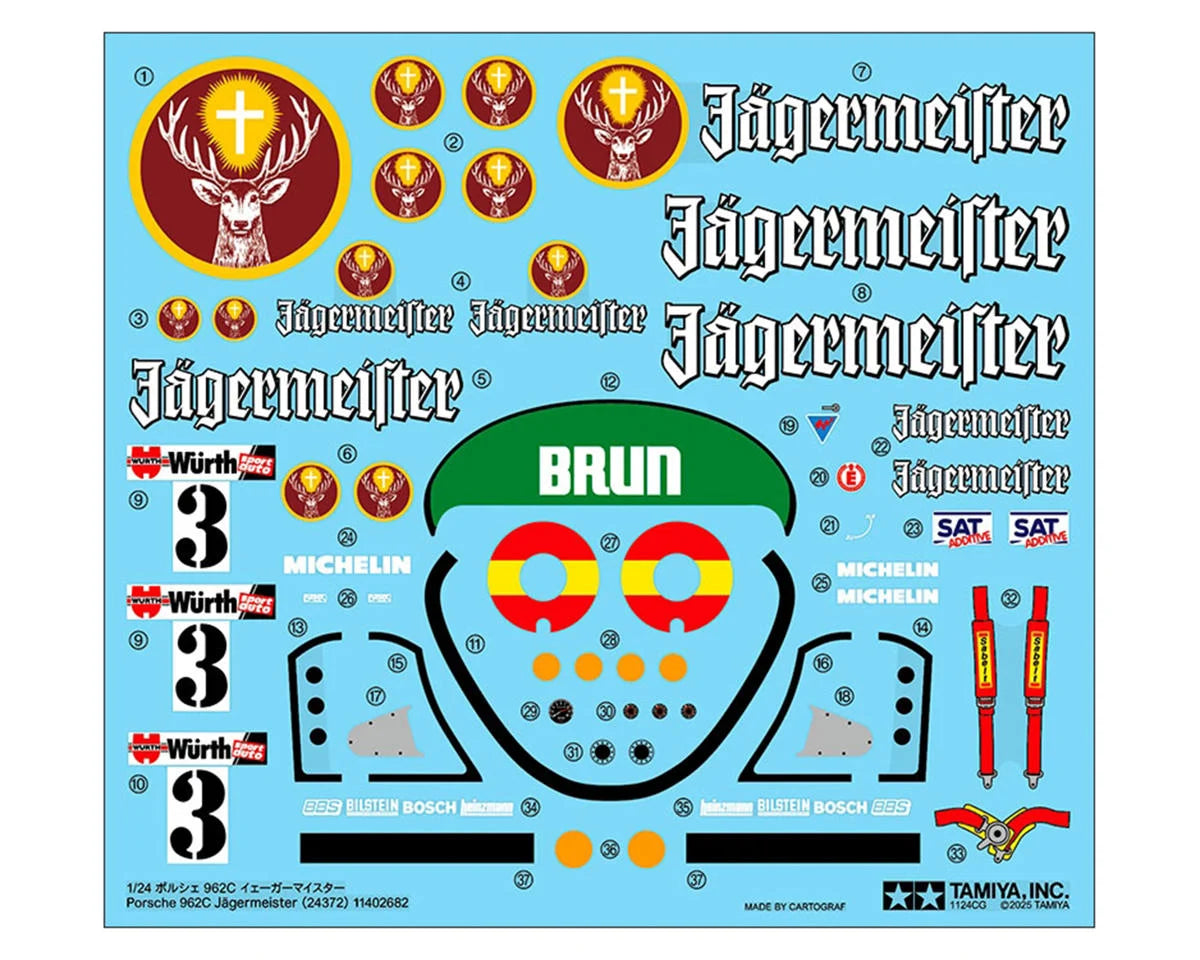 Revive the thrill of endurance racing with the Tamiya 1/24 Porsche 962C Jägermeister Plastic Model Kit, a highly detailed replica of the iconic 1987 race car!