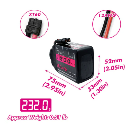 Precio normal $79.99Precio unitarioAgotadoCNHL Black Series V2.0 1500mAh 22.2V 6S Lipo Battery 130C with XT60 Plug