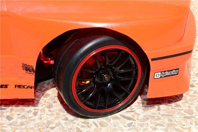 Un juego de neumáticos para deriva de 26 mm con ruedas de plástico de 7 radios, el centro del neumático es resbaladizo para ayudar con el deslizamiento. Recibirá un neumático para derrapes tipo GOMA, resbaladizo y súper duro para una fácil acción lateral y una larga vida útil.