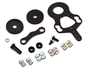 An optional upgraded NEXX Racing Multilength Carbon Disk Damper kit for use with various plastic hard bodies when installed on the Mini-Z MR-02 and MR-03 vehicles. The included springs are offered for tuning adjustments, thanks to their different stiffness.
