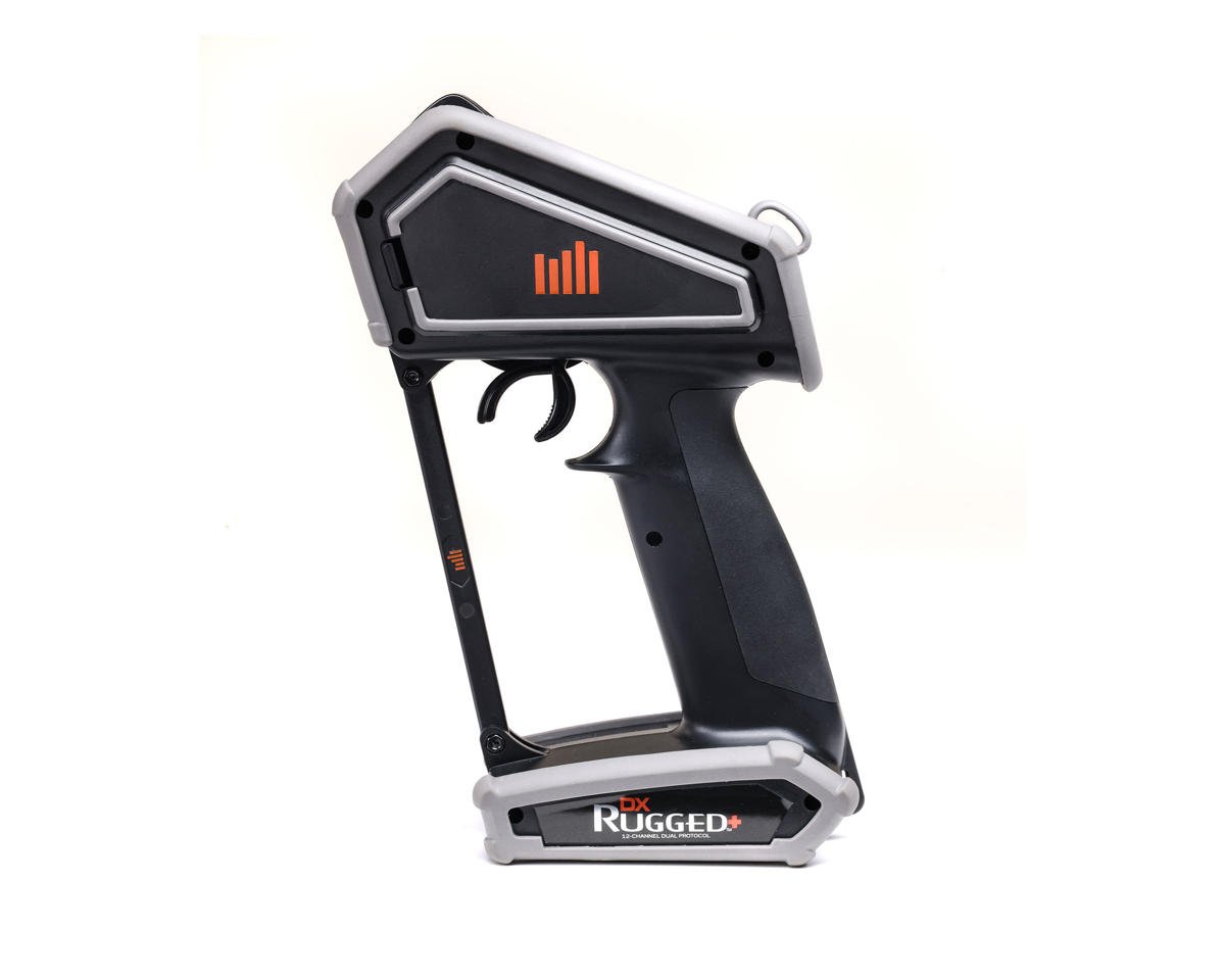 The Spektrum™ DX Rugged+ 12-channel surface transmitter redefines radio control with a level of durability to match the tough conditions off-roaders, bashers, and boaters encounter constantly. Like its predecessor, the DX6 Rugged, it features superb ergonomics. Additionally, it's built around frequency-agile DSMR+ 2.4GHz technology and Dual Protocol Compatibility allows easy binding with DSMR and SLT Protocol receivers. The result is a class-leading RC system with unmatched durability and other innovative features that unite with precision, versatility, and convenience you won't want to drive without.