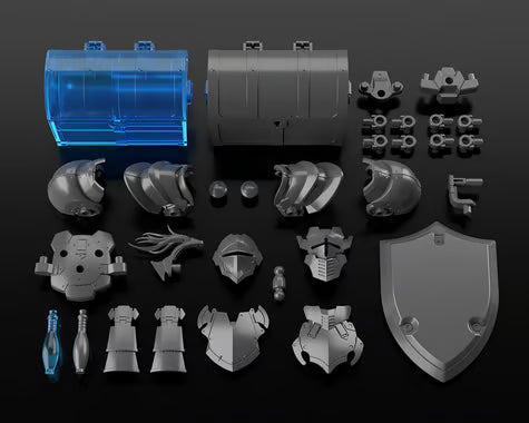 This is the Item Shop Knight Option set from Bandai's plastic model kit series, 30 Minutes Fantasy (30MF). Expand your collection with this versatile set full of weapons and items that enhance customization options. Featuring face, shoulder, and chest armor parts with two different designs, along with treasure chests and potions in multiple types, this set offers a wide range of possibilities for your figures. Additionally, included joint parts facilitate compatibility with other 30MF and 30MS model parts, allowing for even more customization possibilities.