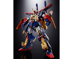 The GX-113 Strongest Mobile Gundam Tryon 3 by Bandai Tamashii Nations celebrates the 10th Anniversary of "Gundam Build Fighters Try" with impressive detail and functionality. This highly articulated figure features the ZZ Gundam-based three-body combination mecha, renowned for its striking lion emblem and seamless transformation without the need for replacement parts. As the first Gundam item in the Soul of Chogokin series, it combines die-cast and plated parts to achieve a truly spectacular appearance.