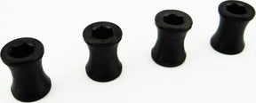 Este es un paquete de cuatro sujetadores de tuercas de barril de rueda M4 de acero negro Hot Racing, diseñados para usar con los kits Traxxas Rustler, Slash y Stampede.
