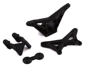 Este es un juego de repuesto de torre de choque y soportes de ala Losi Mini-B, diseñado para usarse con el Losi Mini-B Buggy.