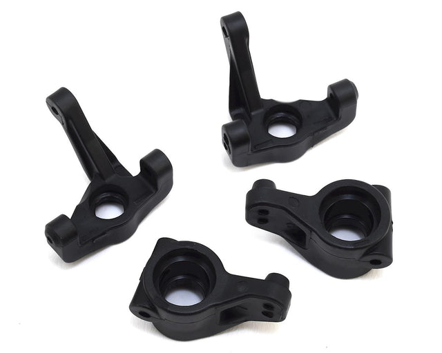 Losi 22S SCT Hub & Spindle Set. Package includes replacement left and right side rear hubs, as well as left and right side steering spindles.