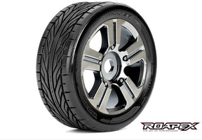 ROAPEX ROPR5001-CB Trigger 1/8 Neumáticos para buggy, montados sobre ruedas cromadas negras,