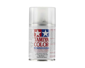 Esta es una lata de 100 ml de pintura en aerosol transparente de policarbonato Tamiya PS-55. Estas pinturas en aerosol fueron desarrolladas especialmente para decorar carrocerías de policarbonato transparente utilizadas en el modelismo de automóviles R/C. Cada lata contiene 100 ml (3 oz) de pintura, que es la cantidad adecuada para terminar un modelo a escala 1/10.