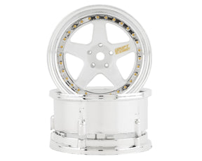 DS Racing Drift Element 5 Spoke Drift Wheels (White & Chrome w/Gold Rivets) (2) (Adjustable Offset) w/12mm Hex