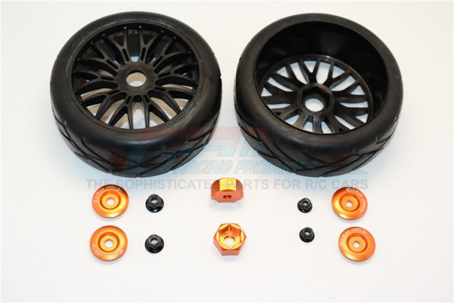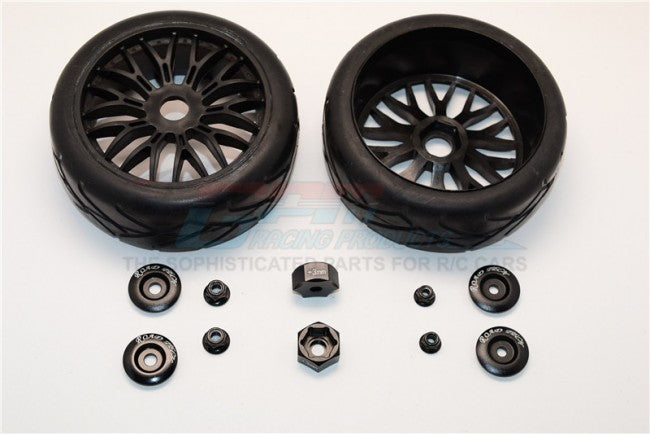 GPM RACING,ROADTECH TIRES&WHEELS GPM RACING RUBBER RADIAL TIRES WITH PLASTIC WHEELS WITH 12MM TO 17MM CONVERTER & 4MM & 5MM WHEEL LOCK -2PCS SET TRX88910/2