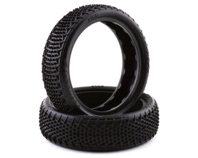 The JConcepts Fuzz Bite LP Carpet 2.2" 2WD Front Buggy Tire is a pin tire option for carpet and turf racing, designed with radius positioning to enhance the drive on a range of surfaces.