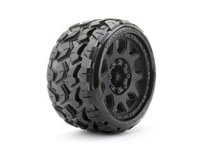 JETKO 1/8 SGT 3.8 Tomahawk Tires Mounted on Black Claw Rims, Medium Soft, Belted, 17mm 1/2" Offset (2)