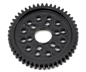 Kimbrough spur gears are full width, because a narrow or profiled plastic gear can deform under load, is weaker and less efficient. This can cause drag in the gear train and waste horsepower. The wider a gear is, the more load it can handle. The only time gear engineers narrow gears, is when there is a space limitation. Kimbrough Racing Products gears run quiet because they have the correct tooth shape and don't have to be narrowed. Choose from a variety of tooth count choices to allow you to fine tune the torque and top speed of your model.