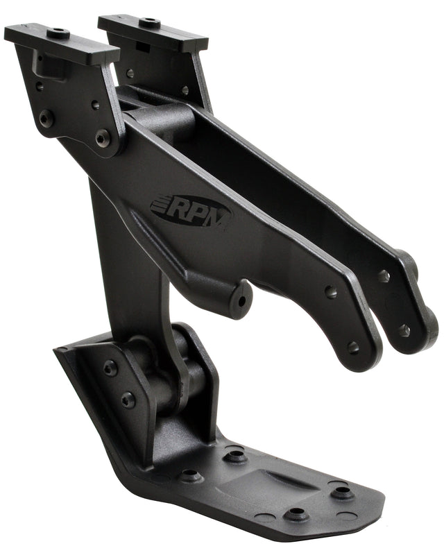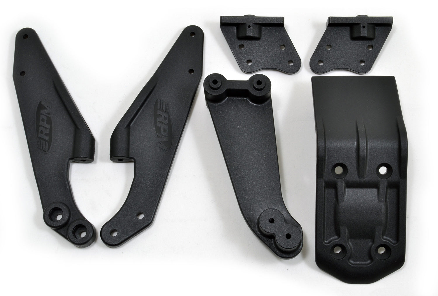Included Rear Skid Plate: In order to make the toughest wing mounts, they had to devise a new structure to create a triangulated base of support. RPM's rear skid plate incorporates mounting points for a vertical brace. The brace spans the distance between the wing mounts and the skid plate, creating an incredibly tough system. As an added bonus, the skid plate helps protect the rear end of that expensive aluminum chassis.