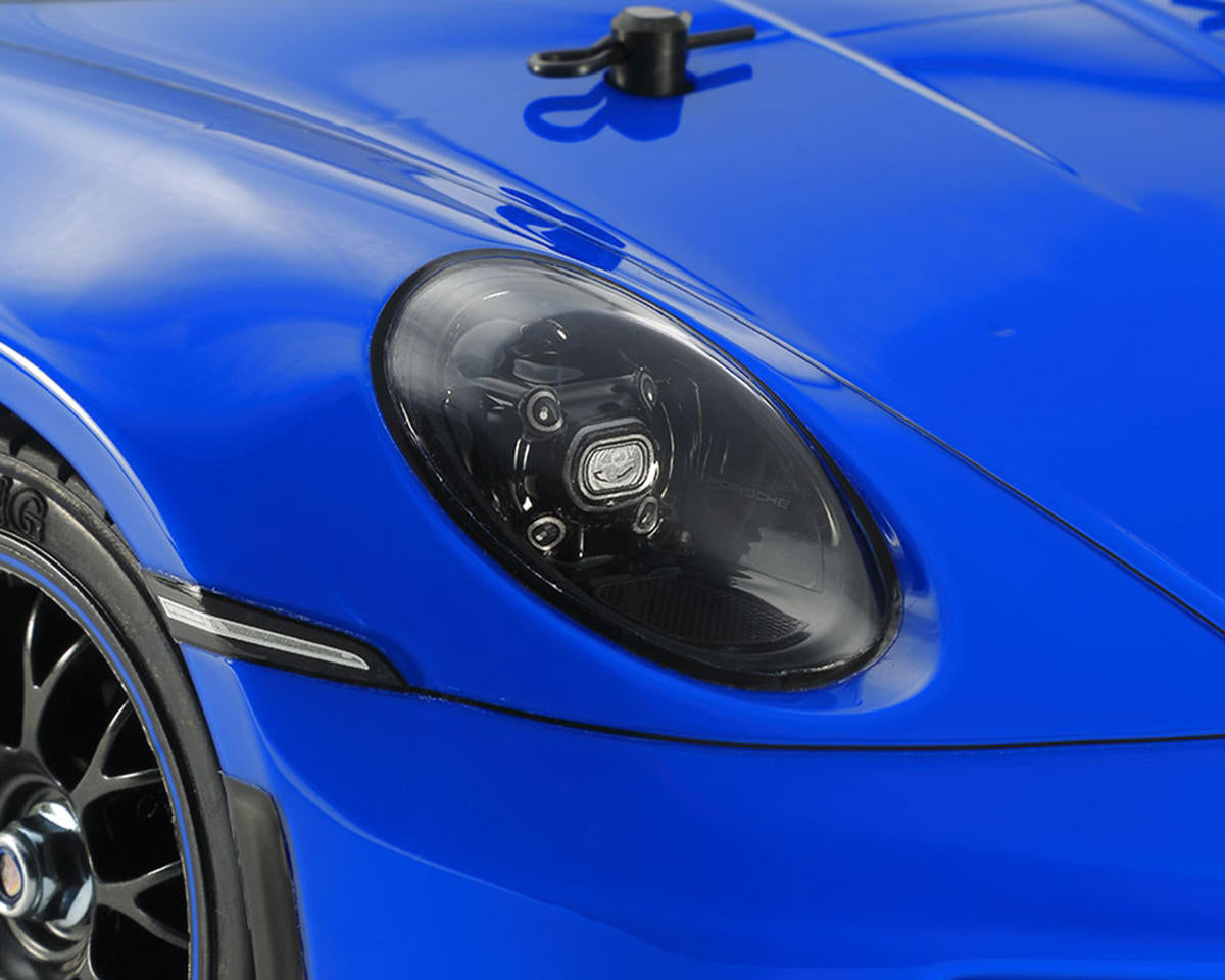 The PaPorsche 911 GT3 (992) body boasts a captivating body design intricately replicated in this RC model assembly kit. Characterized by stunning attention to detail, the polycarbonate body captures the sleek and aerodynamically refined contours of the full-size 7th generation Porsche 911 GT3. The hanging type wing stay not only imparts a dynamic aesthetic but also contributes to enhanced downforce and reduced drag, reflecting the real car's commitment to performance and style.