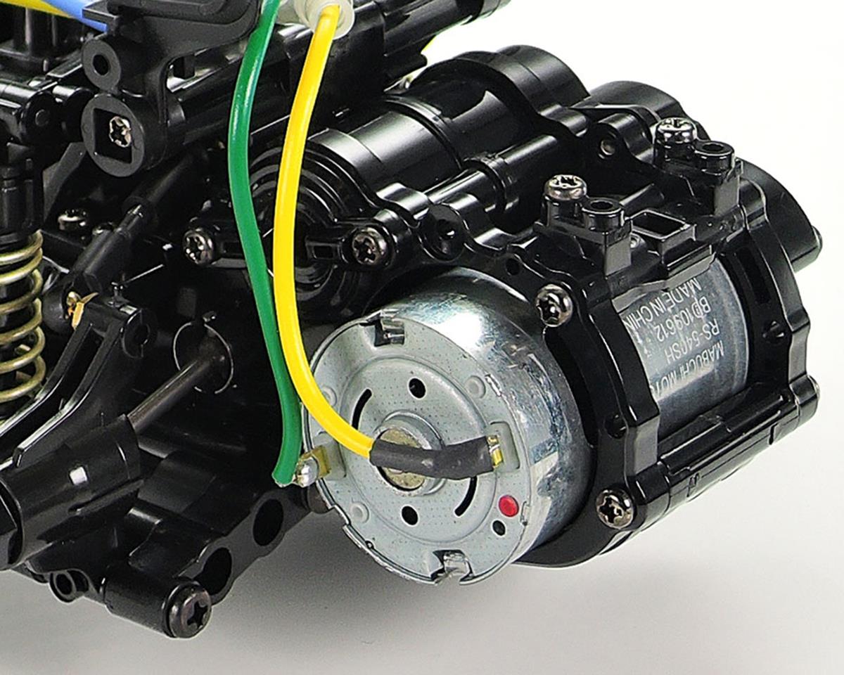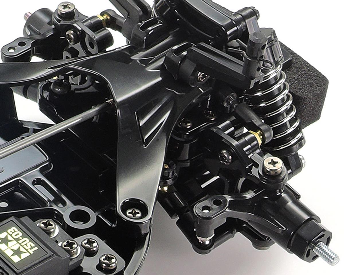 Le châssis M-06 est doté d'un moteur monté à l'arrière, d'une configuration de propulsion arrière et d'un bloc de batterie monté longitudinalement, avec un équipement radio R/C positionné de chaque côté pour un équilibre optimal et un centre de gravité bas. La suspension à double triangulation aux 4 roues est équipée de pneus radiaux 60D à l'avant et de pneus super adhérents 60D à l'arrière. De plus, une tringlerie de direction en 3 parties offre une maniabilité agile.