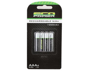 EcoPower High Power Rechargeable AAA NiMH Batteries (4) (1.2V/1000mAh) (Mini-Z)
