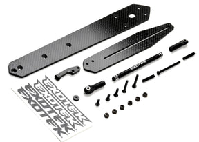 The Exotek 22S Drag Carbon Adjustable Flat Wheelie Bar is an extra long adjustable carbon fiber wheelie bar option for the Lost 22S Drag car. This bar is adjustable and extends from 9.5" to 12" (axle to axle), providing a greater level of tuning options compared to the stock bar. The longer bar gives you more stability, for straighter and faster passes without needing to let off the throttle as often compared to the stock short bar.