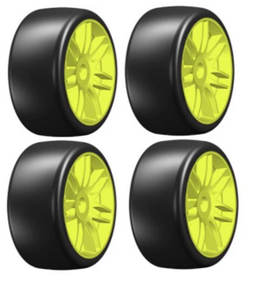 GRP 1:8 GT T02 Slick S2 XSoft Mounted Tires Spoked Yellow Wheel (4) GTY02-S2