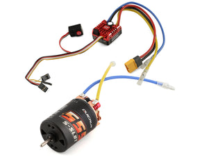 The Hobbywing QuicRun Waterproof 1080 G2 Brushed Crawling ESC is designed to bring top levels of performance to the Crawler ESC category. This ESC is extremely compact and features many updates! The most impressive is the "Real Car Mode". Using an idle channel on your transmitter allows you to pull the throttle and switch between forward or reverse with pushing the throttle applying brake. This will bring an added level of realism to your RC adventure. This epic combo includes the Hobbywing QuicRun 555 Brushed Motor for out of the box performance and efficiency.