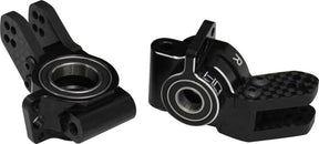 Hot Racing aluminum rear hubs with carbon fiber link tabs for the 1/8 Arrma Kraton BLX, Talion BLW, or Typhon BLX. See vehicle model compatibility in comments below.