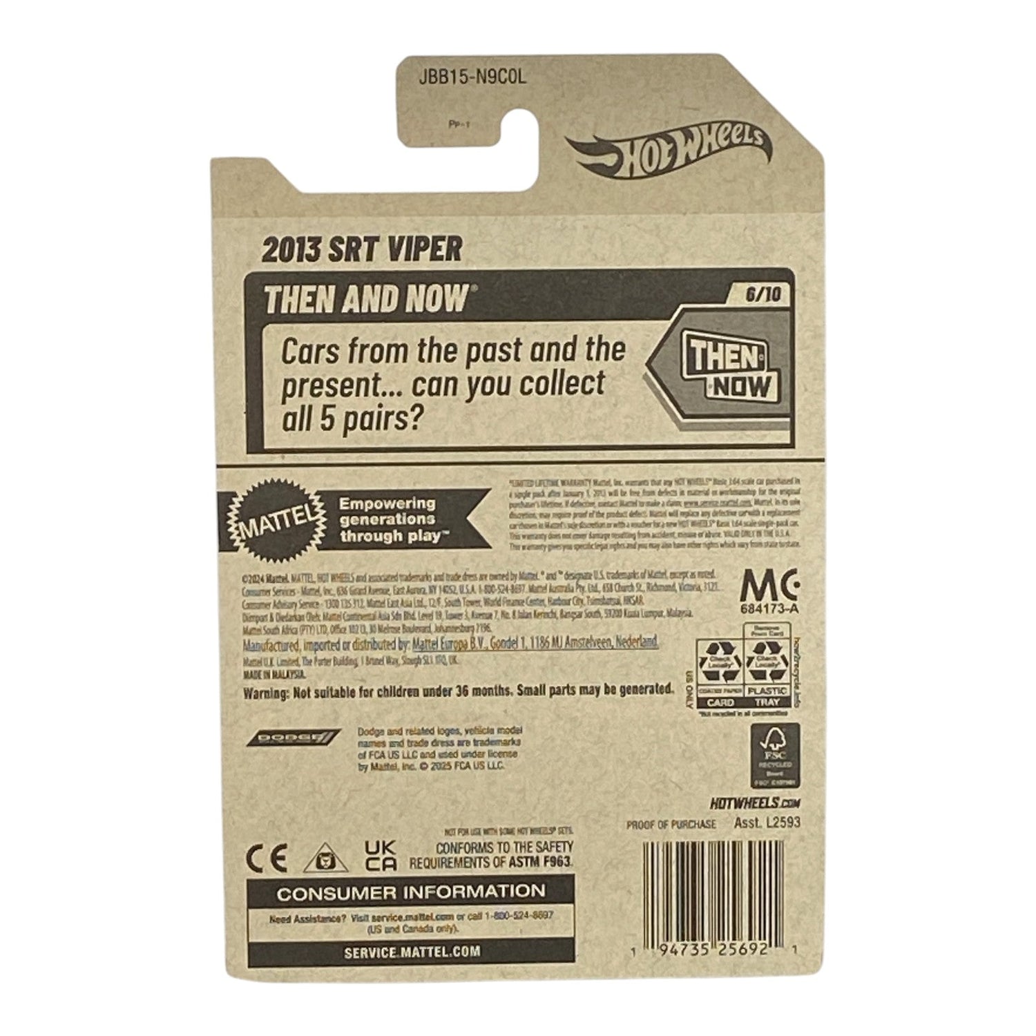 Hot Wheels 2013 SRT Viper - Then and Now Series 6/10 is backordered and will ship as soon as it is back in stock.