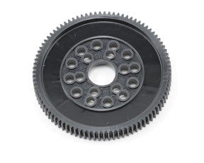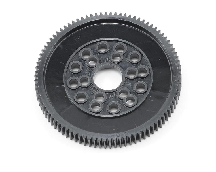 Kimbrough spur gears are full width, because a narrow or profiled plastic gear can deform under load, is weaker and less efficient. This can cause drag in the gear train and waste horsepower. The wider a gear is, the more load it can handle. The only time gear engineers narrow gears, is when there is a space limitation. Kimbrough Racing Products gears run quiet because they have the correct tooth shape and don't have to be narrowed. Choose from a variety of tooth count choices to allow you to fine tune the torque and top speed of your model.