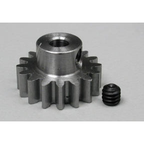 32 pitch pinions precision cut from hard steel alloy, lightened for reduced weight. 1/8 inch bore. One 5-40 set screw included.