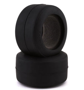 Tamiya F104 Type A Rear Rubber Tires. These belted rear soft option tires for F104 chassis features superb grip in cold conditions and will help you achieve high running performance. When used in combination with the TAM51399 front tires, the car will have more steering to over steer characteristics.