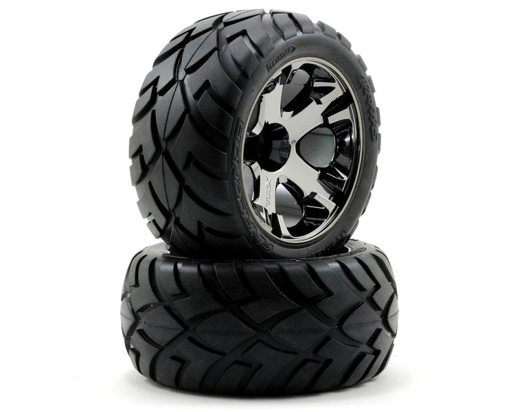 Traxxas 3776A Anaconda Tires w/All-Star Front Wheels (2) (Black Chrome) (Standar is backordered and will ship as soon as it is back in stock.