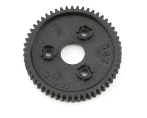 This is a replacement 54T (0.8 Metric Pitch) spur gear from Traxxas. This gear mounts to the input shaft of the transmission, and meshes with the pinion gear on the clutch bell.