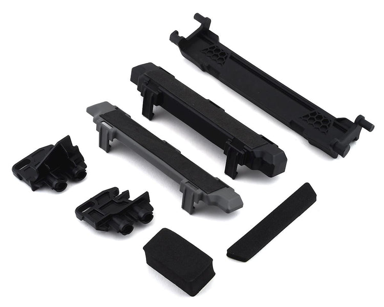 Traxxas Maxx Battery Hold Down. Package includes replacement battery hold down, front and rear mounts, battery compartment spacers and foam pads.