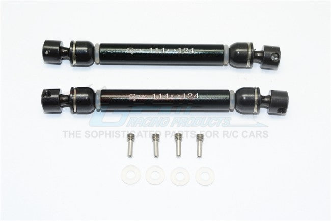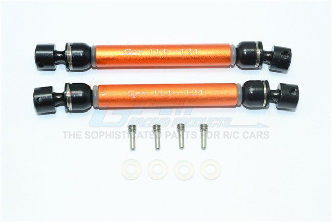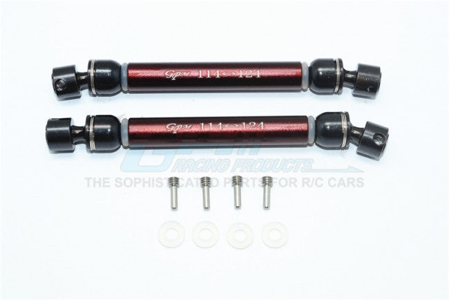 Product major function & usage: 1. Transferring the power from the motor to the whole vehicle. 2. The alloy 6061 T6 and steel mixed material combination is strong and light in weight. Key selling points: 1. The adjustable design of the CVD main shafts is flexible to use for different suspension length of the chassis decided by the users . 2. The alluring anodizing colors are in high quality. 3. The joints and the body of this product can be sold separately as rebuild kit. Other special notes and comments : Adjustable length: Front & Rear 114-124mm