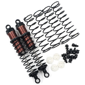 Big Bore Go! Purchase this set of big bore shocks, add oil and off you go! Includes two different types of mounting pillow ball studs for different types of cars! Included are different springs for you to fine tune your ride so you don't have to go looking for different springs after purchasing our set of shocks! If you really want to get serious with tuning, there are different holes of pistons included so you can adjust the how the shock reacts to the shock oil.